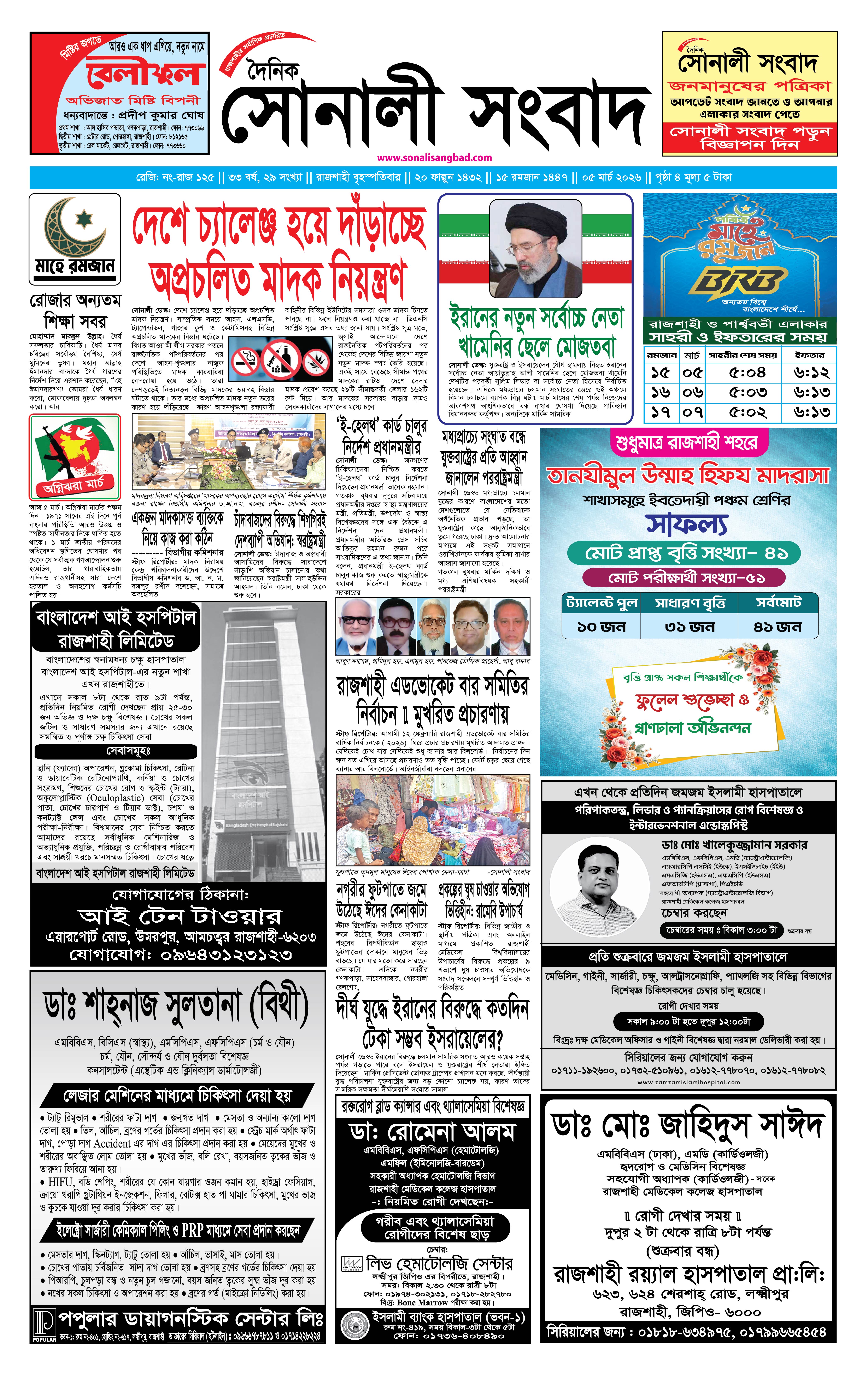 রাজশাহী নগরীতে মাদকবিরোধী অভিযানে ৪ জনসহ গ্রেপ্তার ১৮