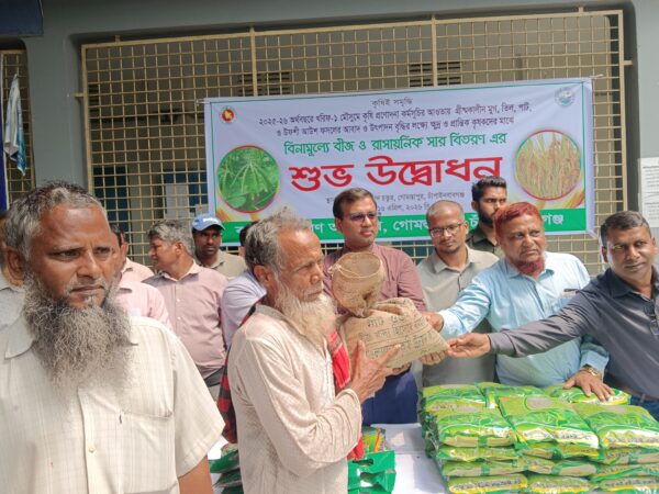 গোমস্তাপুরে কৃষকদের মাঝে ধান বীজ ও রাসায়নিক সার বিতরণ