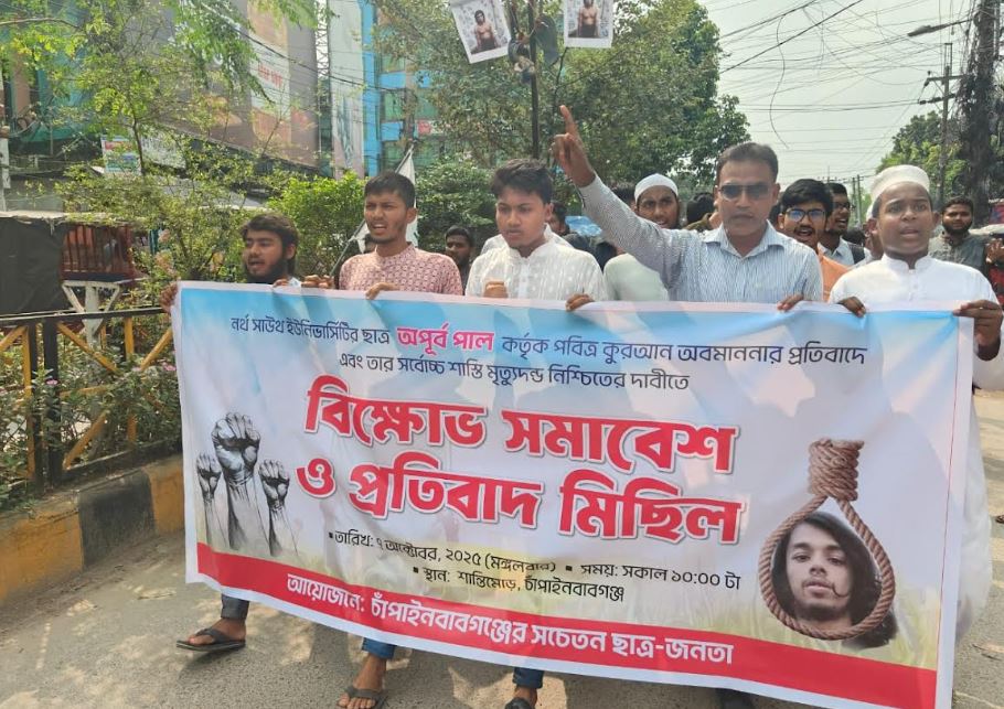 কোরআন অবমাননার প্রতিবাদে চাঁপাইনবাবগঞ্জে বিক্ষোভ সমাবেশ