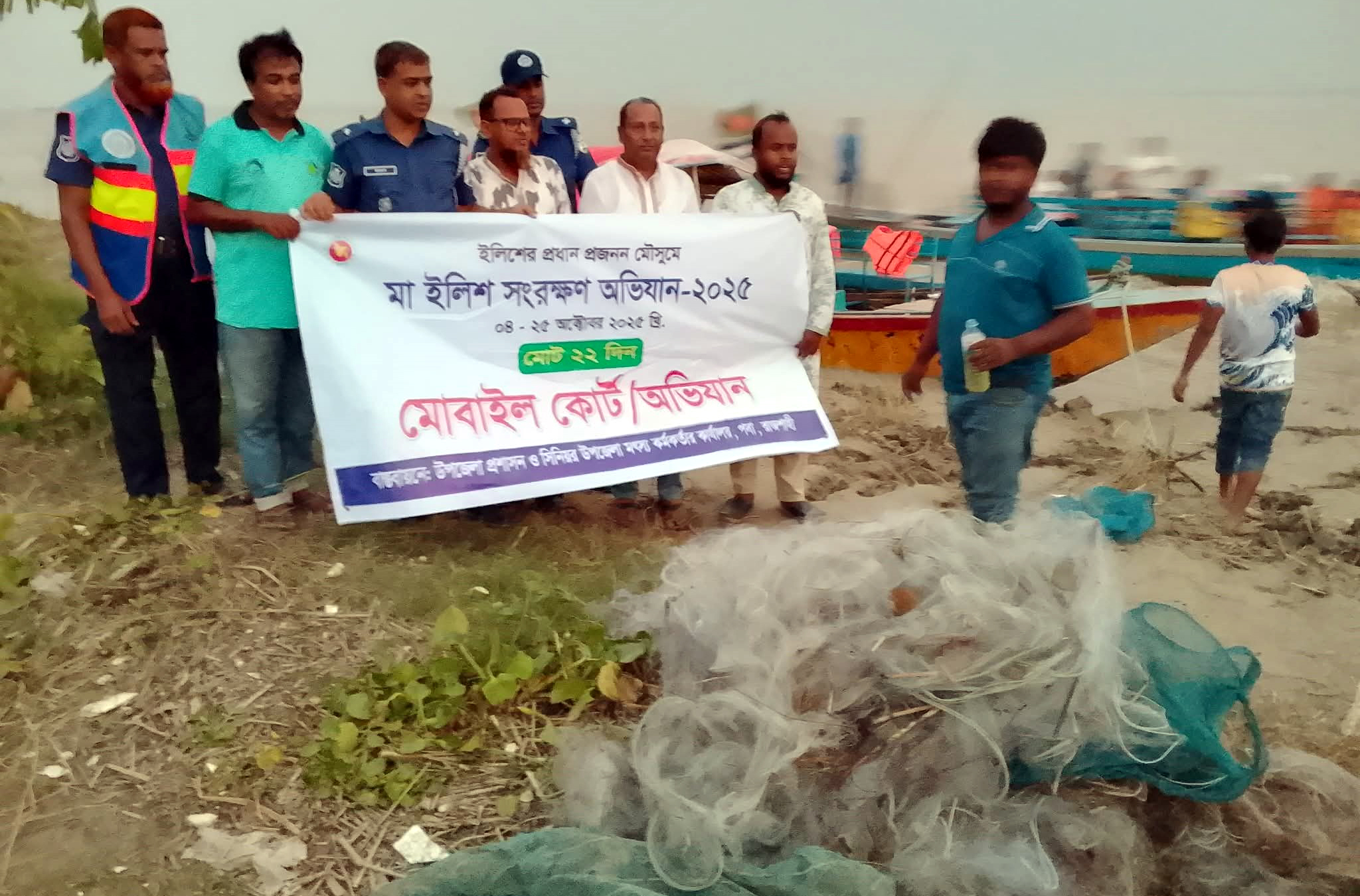 ইলিশ রক্ষায় পদ্মায় অভিযান জালজব্দ