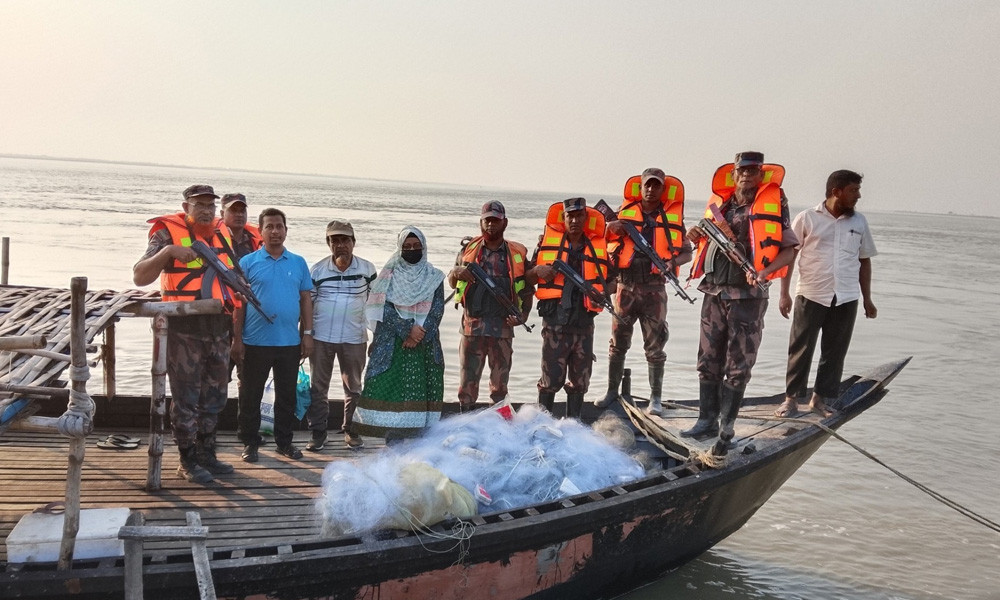 পদ্মায় মা ইলিশ সংরক্ষণে অভিযান ১২ হাজার মিটার কারেন্ট জাল জব্দ