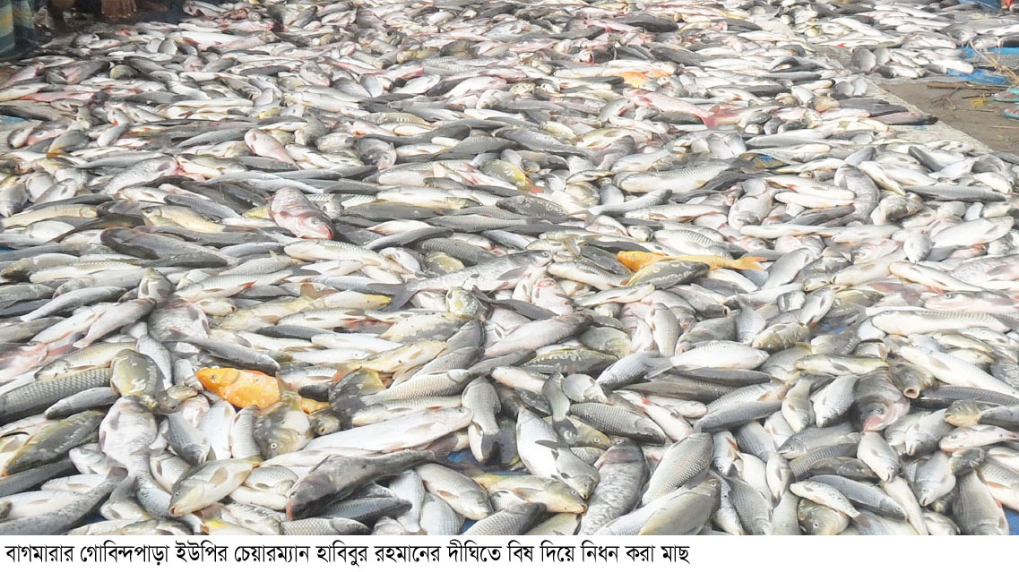 বাগমারায় চেয়ারম্যানের দীঘিতে বিষ দিয়ে কোটি টাকার মাছ নিধন