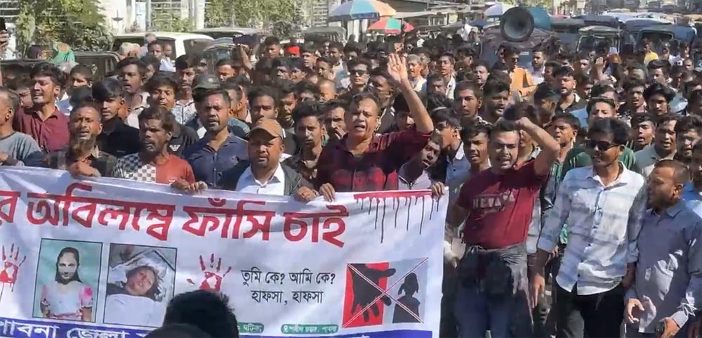 সোমবার সকালে উত্তর শালগাড়িয়া সরদারপাড়া থেকে বিক্ষোভ মিছিলটি বেড় হয়ে জেলা প্রশাসক কর্যালয়ের সামনে গিয়ে সংক্ষিপ্ত সমাবেশ করে। সেখানে নিহত শিশু শিক্ষার্থী হাফসার স্বজন ও গ্রামবাসীরা বক্তব্য দেন।