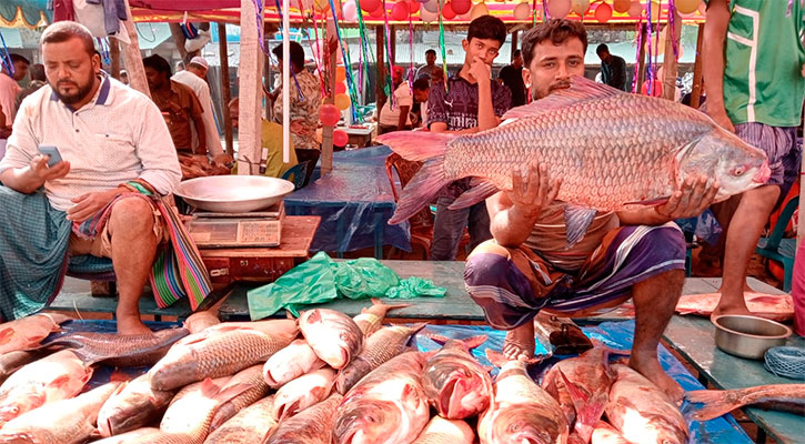 ব্যবসায়ীদের ভাষায়, যদিও ক্রেতা কিছুটা কম, তবু মানুষের উচ্ছ্বাসে তার প্রভাব পড়েনি। বড় আকারের মাছের কেজিপ্রতি দাম ছিল ৭০০ থেকে ১৫০০ টাকা। আর বাঘাইর ও চিতল উঠেছে ১৩০০ থেকে ২০০০ টাকার ঘরে। মাঝারি মাছ বিক্রি হয়েছে ৩০০ থেকে ৪০০ টাকা কেজি দরে। মেলার সবচেয়ে আনন্দঘন দিক হচ্ছে জামাইদের আগমন। শ্বশুরবাড়ির দাওয়াতে এসে তারা এক নীরব প্রতিযোগিতায় অংশ নেন-কার জামাই কত বড় মাছ নিয়ে ফিরতে পারেন। বগুড়ার শিবগঞ্জ থেকে আসা মিজানুর রহমান ১২ কেজির কাতলা কিনে জানালেন, নবান্নে মাছ কেনা বাধ্যতামূলকই বটে। তাই দাম বেশি হলেও আপত্তি নেই। মূলগ্রাম মহল্লার সতেন চন্দ্র বর্মণ প্রায় ৪৪ হাজার টাকায় দুটি বড় মাছ কিনে খুশির হাসিতে বললেন, নাতি-নাতনিদের মুখের হাসিই তার সবচেয়ে বড় প্রাপ্তি।