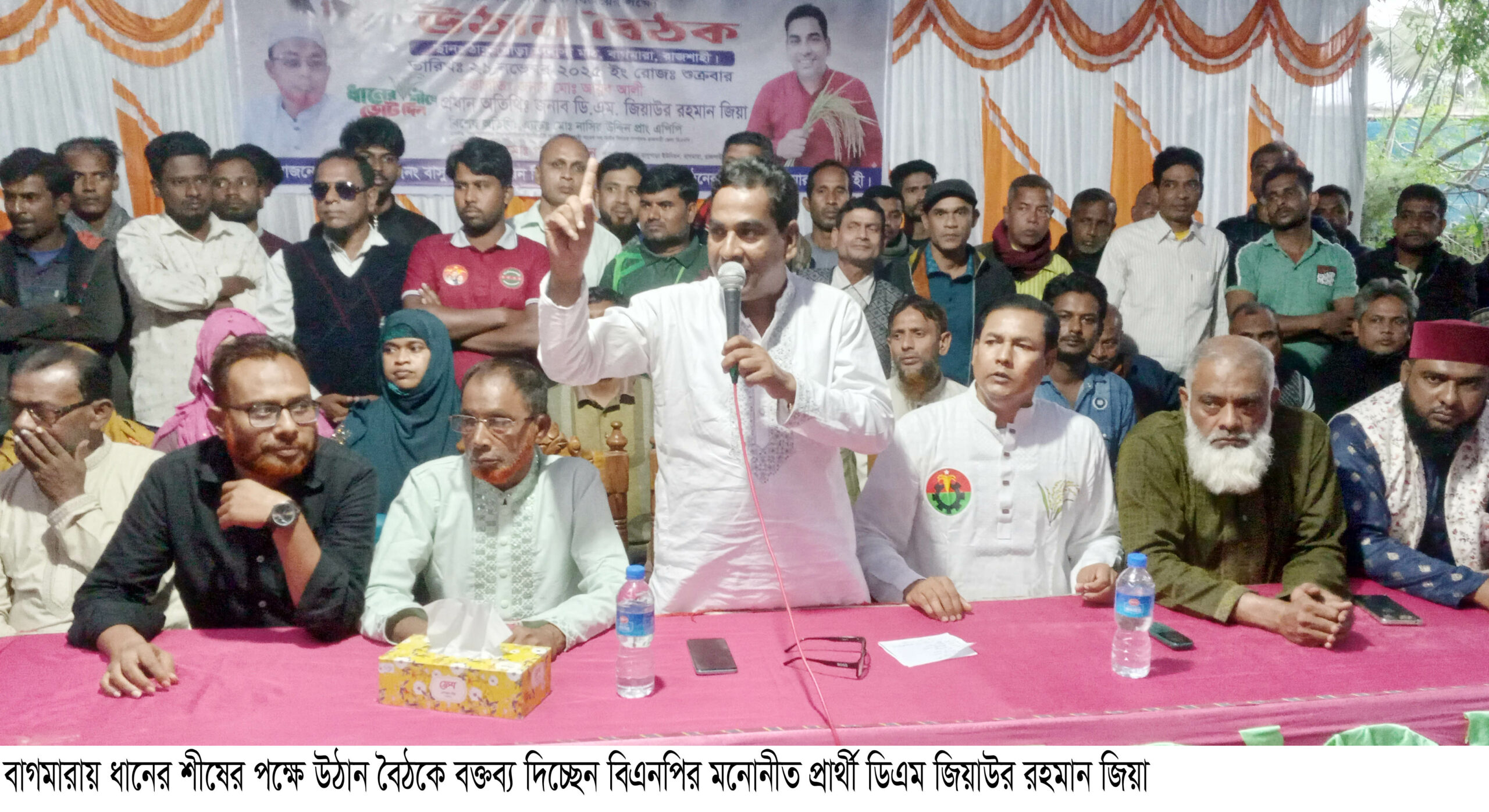 বাগমারায় ধানের শীষের প্রার্থী ডিএম জিয়ার উঠান বৈঠক