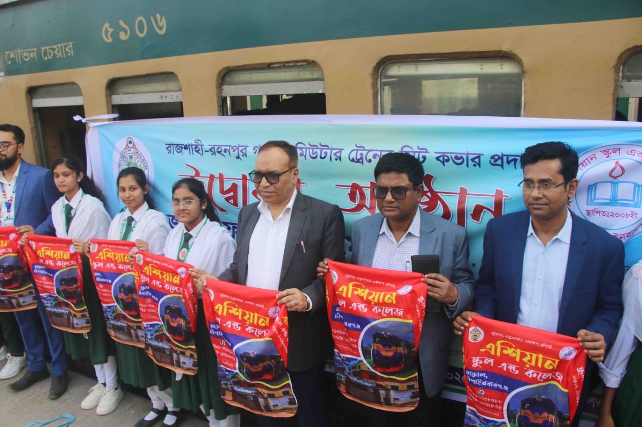 রোববার দুপুরে রাজশাহী রেলওয়ে স্টেশনে প্রধান অতিথি হিসেবে উপস্থিত থেকে কভার সংযুক্তিকরণের উদ্বোধন করেন পশ্চিমাঞ্চল রেলওয়ের মহাব্যবস্থাপক (জিএম) ফরিদ আহমেদ। এসময় অতিথি হিসেবে উপস্থিত ছিলেন পশ্চিমাঞ্চল রেলওয়ের প্রধান বাণিজ্যিক কর্মকর্তা সুজিত বিশ্বাস, প্রধান যান্ত্রিক প্রকৌশলী আমিনুল হাসান, এশিয়ান স্কুল অ্যান্ড কলেজের পরিচালক ইসাহাক আলী, অধ্যক্ষ মরিয়ম খাতুন।