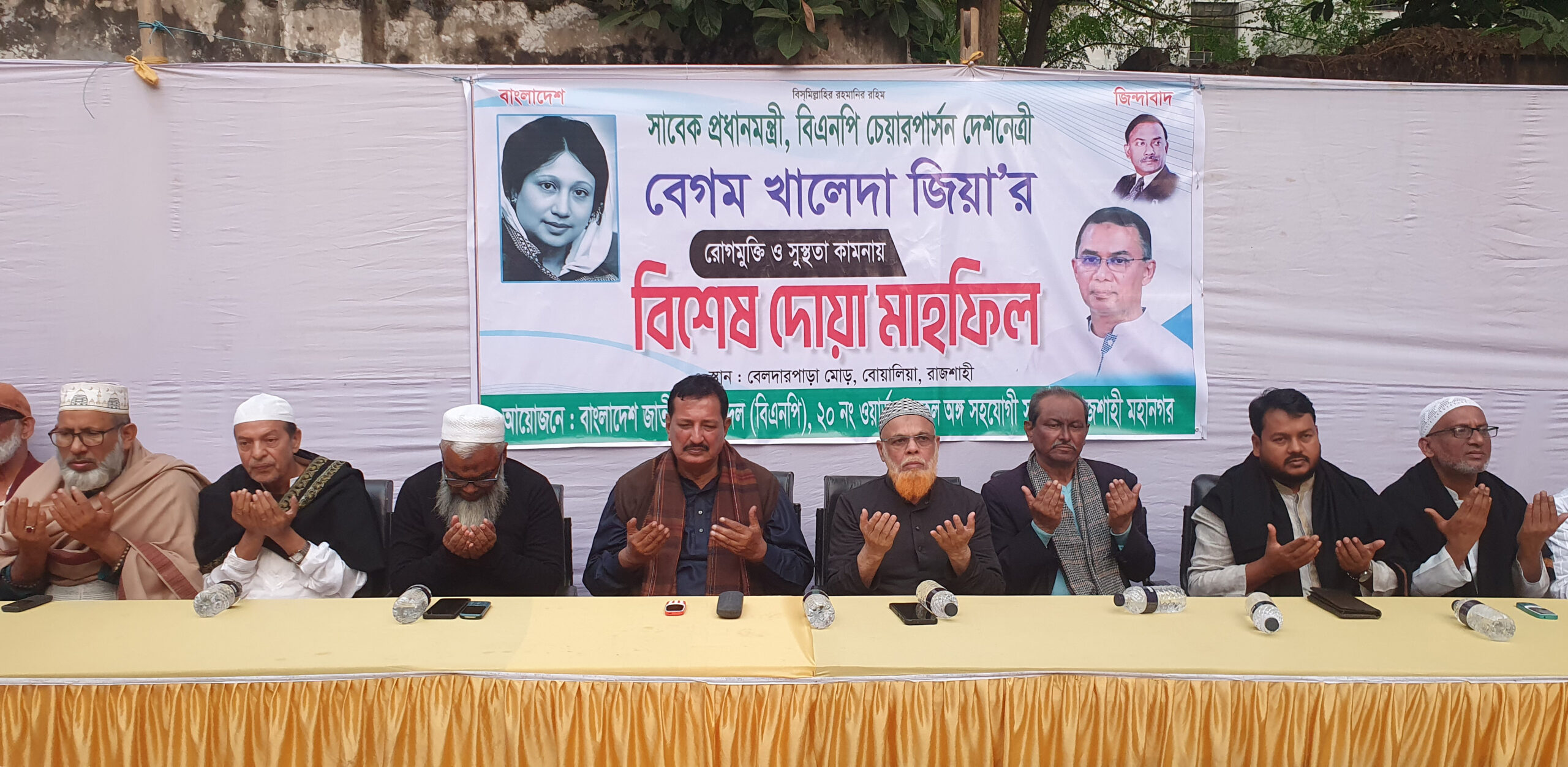 নগরীর ২০ নং ওয়ার্ড বিএনপির সভাপতি শরিফুল ইসলামের সভাপতিত্বে ও সাধারণ সম্পাদক লাল্টুর পরিচালনায় বিশেষ অতিথি ছিলেন বিএনপির কেন্দ্রীয় বন ও পরিবেশ বিষয়ক সম্পাদক সাবেক মেয়র মোহাম্মদ মোসাদ্দেক হোসেন বুলবুল, রাজশাহী মহানগর বিএনপির সভাপতি মামুনুর রশীদ মামুন, মহানগর বিএনপির সিনিয়র সহ-সভাপতি নজরুল হুদা, সহ-সভাপতি আসলাম সরকার, ওয়ালিউল হক রানা, শফিকুল ইসলাম শাফিক ও জয়নুল আবেদীন শিবলী, মহানগর বিএনপির সাধারণ সম্পাদক মাহফুজুর রহমান রিটন, মহানগর বিএনপির সাংগঠনিক সম্পাদক রবিউল আলম মিলু, বোয়ালিয়া থানা (পশ্চিম) বিএনপির সভাপতি শামসুজ্জামান মিলু, সাধারণ সম্পাদক বজলু জামান মোহন, রাজশাহী মহানগর যুবদলের ভারপ্রাপ্ত আহ্বায়ক শরিফুল ইসলাম জনি, সদস্য সচিব রফিকুল ইসলাম রবি ও মহানগর ছাত্রদলের সাবেক সভাপতি আকবর আলী জ্যাকি প্রমুখ। এছাড়াও মহানগর বিএনপি ও এর অঙ্গ সহযোগী সংগঠনের বিভিন্ন পর্যায়ের শত শত নেতাকর্মী উপস্থিত ছিলেন। পরে বেগম খালেদা জিয়ার আশু রোগমুক্তি কামনা করে বিশেষ দোয়া করা হয়।