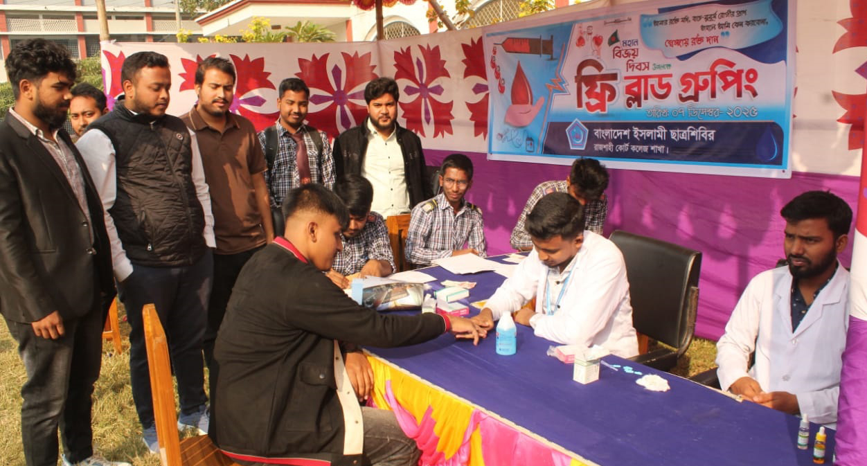 স্টাফ রিপোর্টার: ইসলামী ছাত্রশিবির রাজশাহী কোর্ট কলেজ শাখার উদ্যোগে মহান বিজয় দিবস উপলক্ষে ফ্রি ব্লাড গ্রুপিং আয়োজন করা হয়।