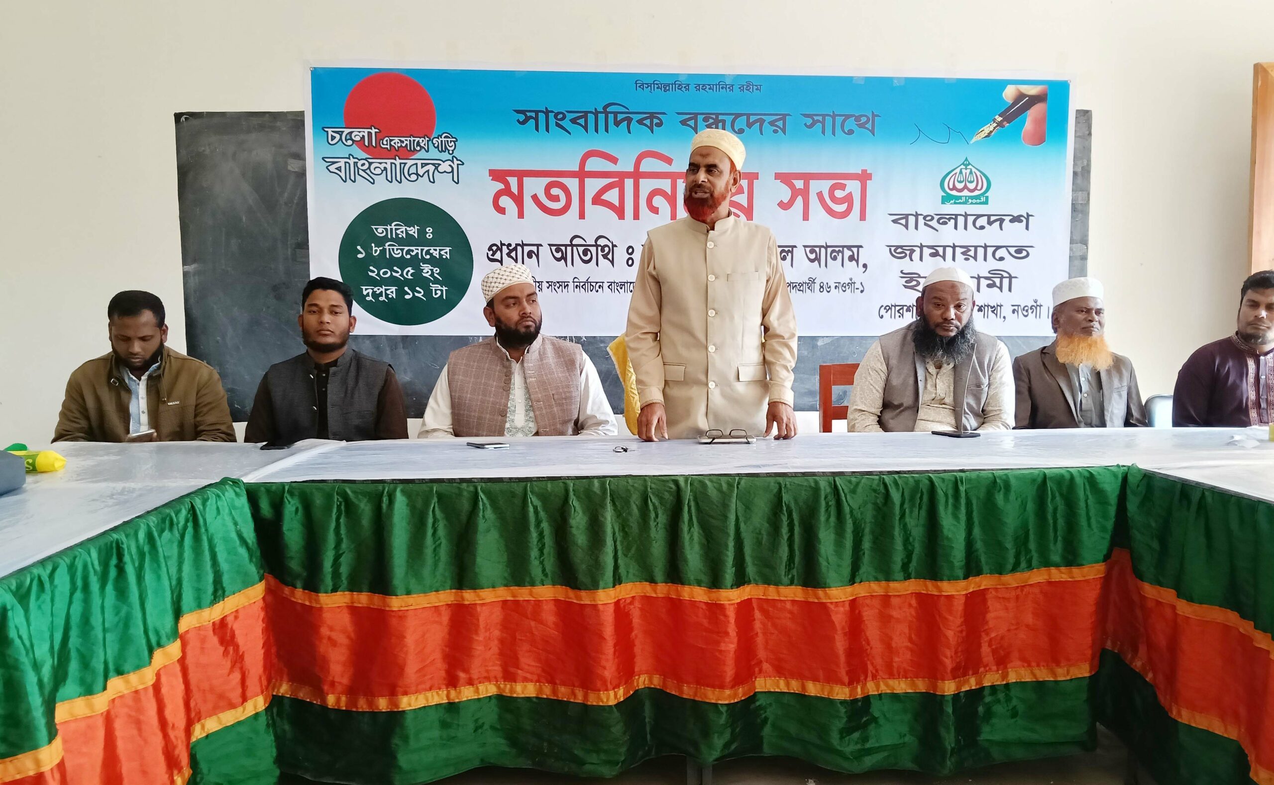 উপজেলা জামায়াতের সেক্রেটারী শরিফুল ইসলামের পরিচালনায় এতে সভাপতিত্ব করেন উপজেলা জামায়াতের আমির মাওলানা সাগর আলী। এসময় উপজেলা জামায়াতের যুগ্ম সেক্রেটারি নুর নবী, উপজেলা ওলামা মাসায়েখ সভাপতি মাও: আলাউদ্দিন আলী, নওগাঁ জেলা ছাত্র শিবিরের সেক্রেটারী আজাহারুল হক, শ্রমিক কল্যাণ ফেডারেশনের উপজেলা সভাপতি ইয়াদুল হক ও কর্মপরিষদ সদস্য আমিনুল ইসলাম। সংবাদ কর্মীদের সাথে মতবিনিময়কালে অধ্যক্ষ মাহবুবুল হক নওগাঁ-১ আসনের তিনটি উপজেলা সাপাহার-পোরশা-নিয়ামতপুরকে বৈষম্যহীন, কল্যাণকর ও উন্নয়নের সংসদীয় আসন হিসেবে গড়ে তোলার আশাবাদ ব্যক্ত করেন।