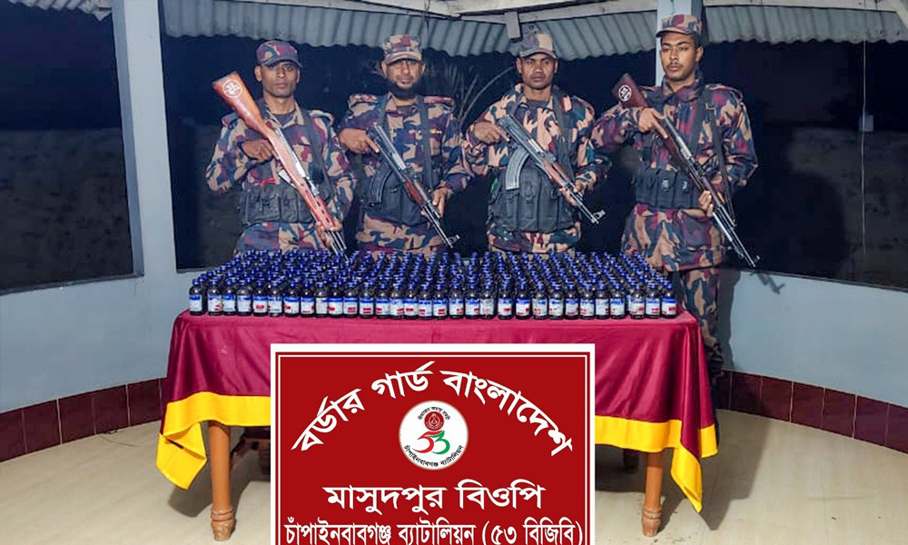 চাঁপাইনবাবগঞ্জ সীমান্তে ৮১২ বোতল নেশাজাতীয় সিরাপ জব্দ