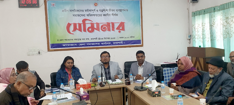 গতকাল বুধবার রাজশাহী জেলা সমাজসেবা কমপ্লেক্স সভাকক্ষে অনুষ্ঠিত সেমিনারে বক্তারাএ কথা বলেন। জেলা সমাজসেবা কার্যালয়ের আয়োজনে অনুষ্ঠিত সেমনিারে সভাপতিত্ব করেন, জেলা সমাজসেবা অধিদপ্তরের উপপরিচালক মনিরা খাতুন। সেমিনারের মূল প্রবন্ধ উপস্থাপন করেন বিভাগীয় সমাজসেবা অধিদপ্তরের পরিচালক সৈয়দ মোস্তাক হাসান (যুগ্ম সচিব)। প্রবন্ধের ওপর আলোচনায় অংশ নেন, অতিরিক্ত জেলা প্রশাসক (সার্বিক) স ম হা সবুর আলী, বিভাগীয় সমাজসেবা অধিদপ্তরের অতিরিক্ত পরিচালক তাপস ফলিয়া, অতিরিক্ত পুলিশ সুপার (ডিএসবি) সাবিনা ইয়াসমিন।