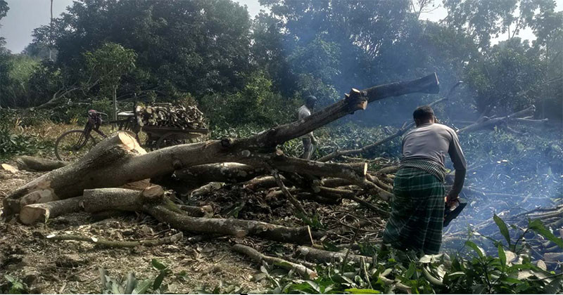 চারঘাটে দাম না পেয়ে আম গাছ কেটে ফেলছেন কৃষকেরা