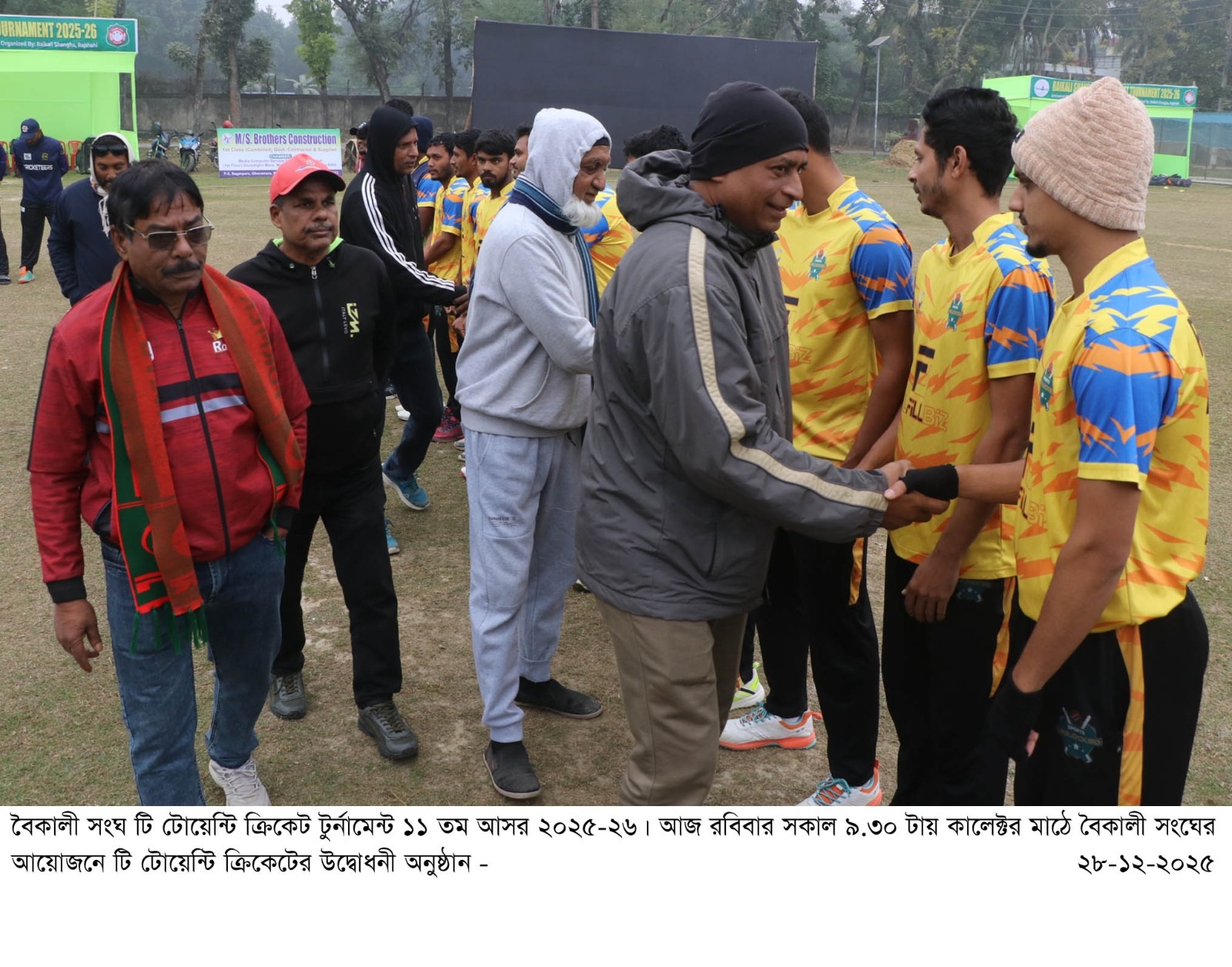 স্পোর্টস ডেস্ক: শুরু হয়েছে বৈকালী সংঘ টি-টোয়েন্টি ক্রিকেট টুর্নামেন্ট ১১তম আসর ২০২৫-২৬। গতকাল রোববার সকাল সাড়ে ৯টায় কালেক্টর মাঠে বৈকালী সংঘের আয়োজনে টি টোয়েন্টি ক্রিকেটের উদ্বোধনী অনুষ্ঠানে সভাপতিত্ব করেন বৈকালী সংঘের সহ-সভাপতি রফিকুল ইসলাম সওদাগর।