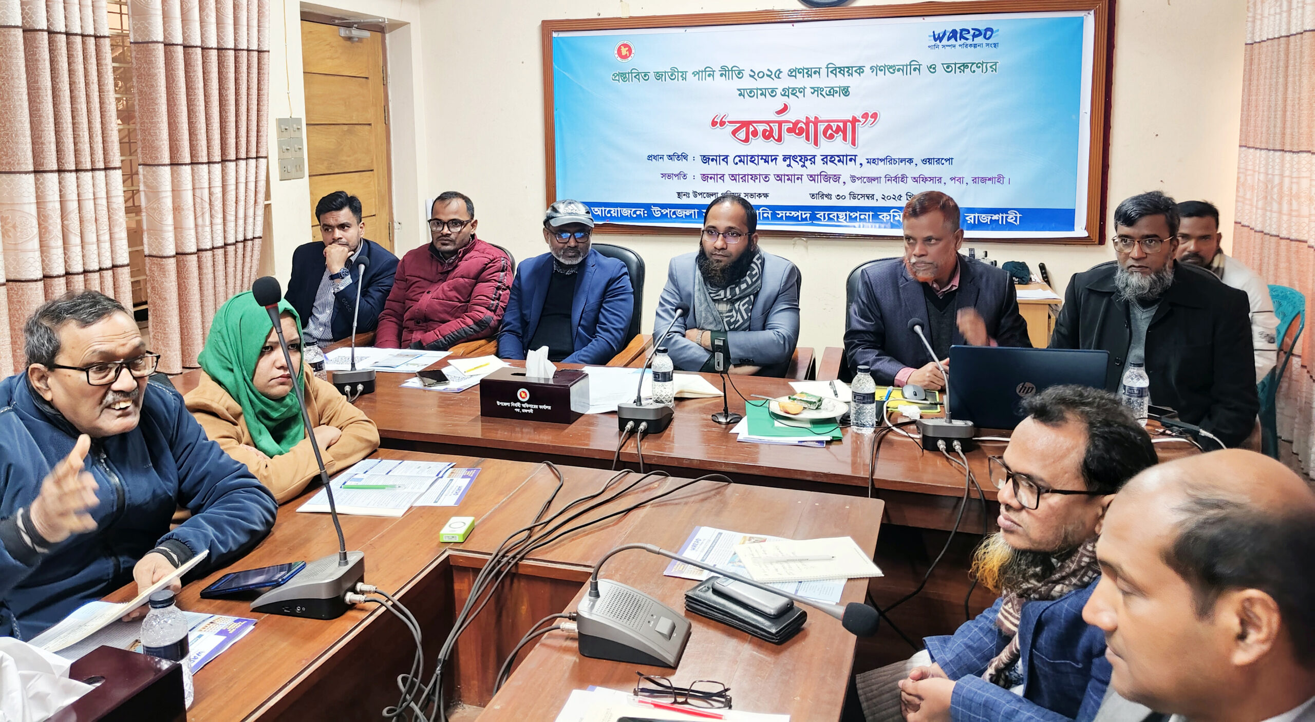 গতকাল মঙ্গলবার পবা উপজেলা পরিষদ সভাকক্ষে প্রস্তাবিত জাতীয় পানিনীতি-২০২৫ প্রণয়ন বিষয়ক গণশুনানি ও তারুণ্যের মতামত গ্রহণ সংক্রান্ত কর্মশালায় এসব তথ্য জানানো হয়। কর্মশালাটি আয়োজন করে পানি সম্পদ পরিকল্পনা সংস্থা (ওয়ারপো)।
