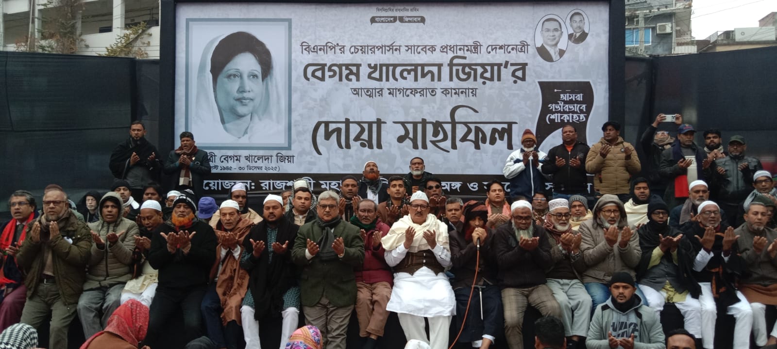 গতকাল সোমবার রাজশাহী নগরীতে সাবেক প্রধানমন্ত্রী ও বিএনপির চেয়ারপারসন বেগম খালেদা জিয়ার রুহের মাগফেরাত কামনায় মহানগর বিএনপি আয়োজিত দোয়া মাহফিলে প্রধান অতিথির বক্তব্যে তিনি একথা বলেন।