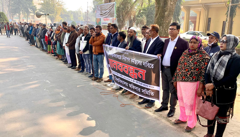 নিরাপদ কর্মপরিবেশের দাবিতে রাবি অফিসার সমিতির মানববন্ধন