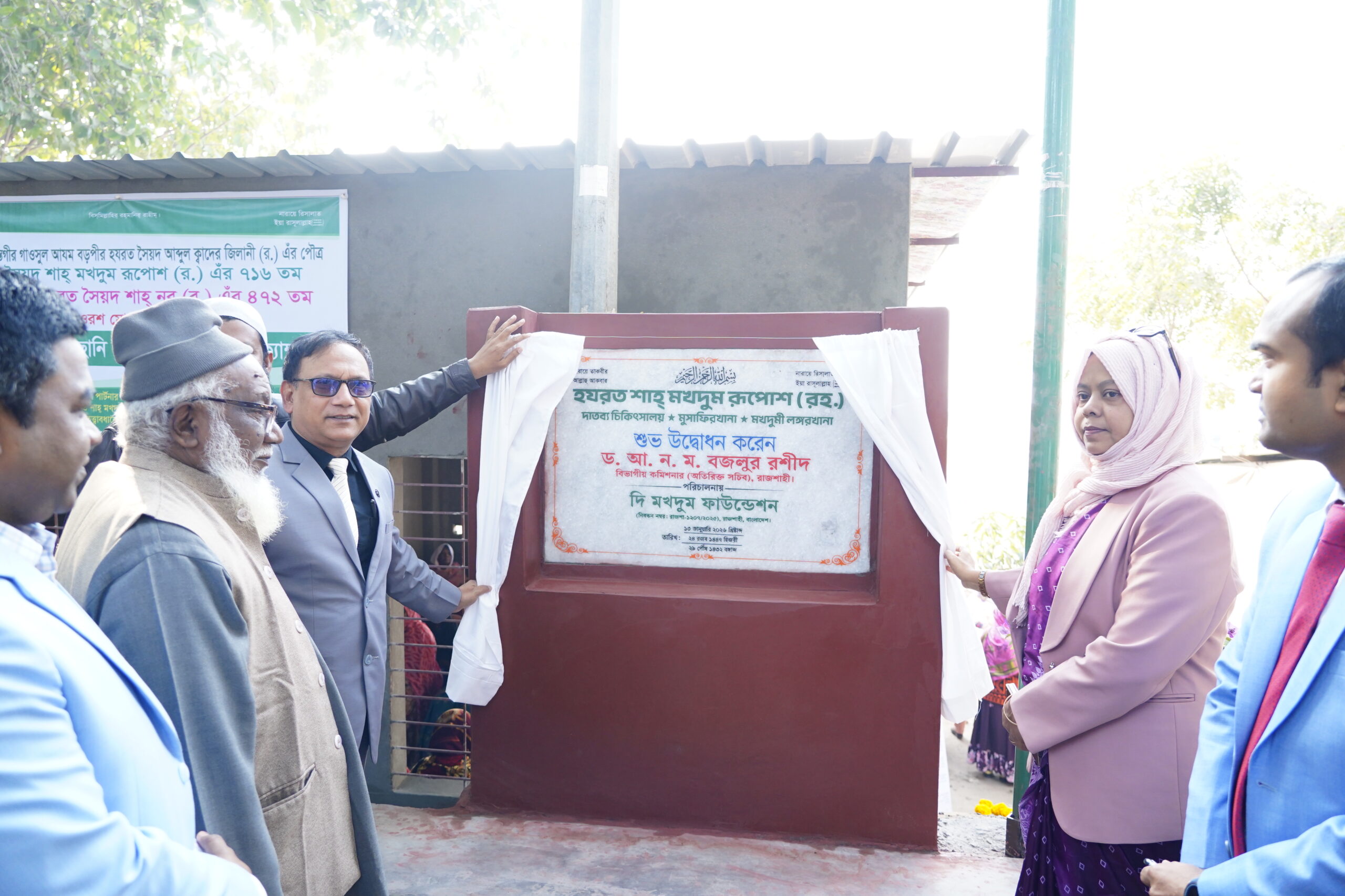 গতকাল মঙ্গলবার ফলক উন্মোচনের মাধ্যমে এর উদ্বোধন করেন তিনি। উদ্বোধন শেষে দোয়া ও মোনাজাত করা হয়। উদ্বোধনকালে উপস্থিত ছিলেন রাজশাহী জেলা প্রশাসক আফিয়া আখতার, অতিরিক্ত জেলা প্রশাসক (সার্বিক) মোহা: সবুর আলী, দি মখদুম ফাউন্ডেশনের প্রতিষ্ঠাতা ডা. সুরায়েত রহমান, ফাউন্ডেশনের সাধারণ সম্পাদক ডা. তাওহিদ মাজিদ, সহ-সভাপতি মিজানুর রহমান মিজি প্রমুখ।