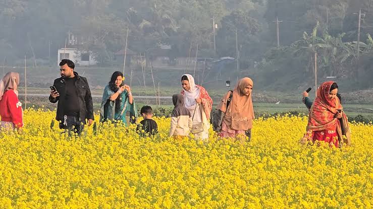 দর্শনার্থী ঠেকাতে সরিষা খেতে পাহারা কৃষকের