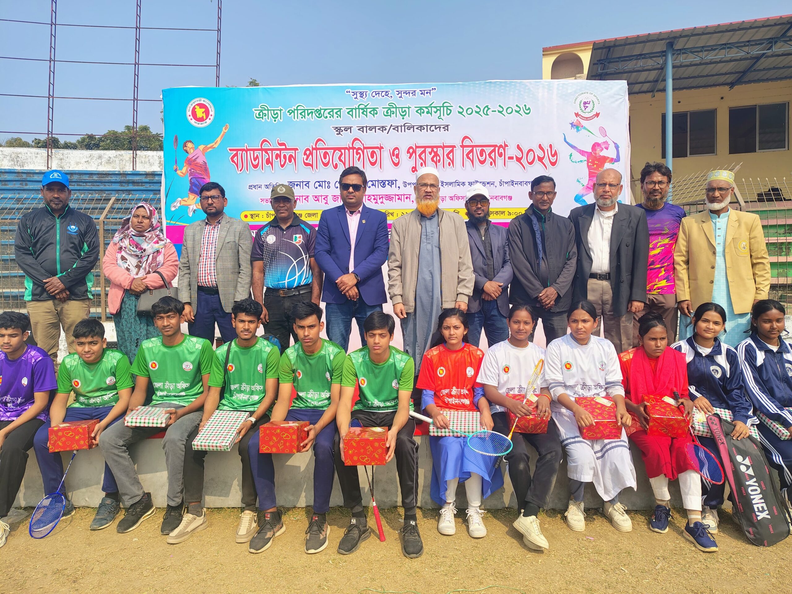 স্পোর্টস ডেস্ক: বাংলাদেশ ক্রীড়া পরিদপ্তরের বার্ষিক ক্রীড়া কর্মসূচির অংশ হিসেবে চাঁপাইনবাবগঞ্জ জেলা ক্রীড়া অফিসের ব্যবস্থাপনায় চাঁপাইনবাবগঞ্জ জেলা স্টেডিয়ামের নতুন মাঠে সকাল ৯টায় স্কুল বালক-বালিকাদের ব্যাডমিন্টন প্রতিযোগিতা দিনব্যাপী অনুষ্ঠিত হয়।