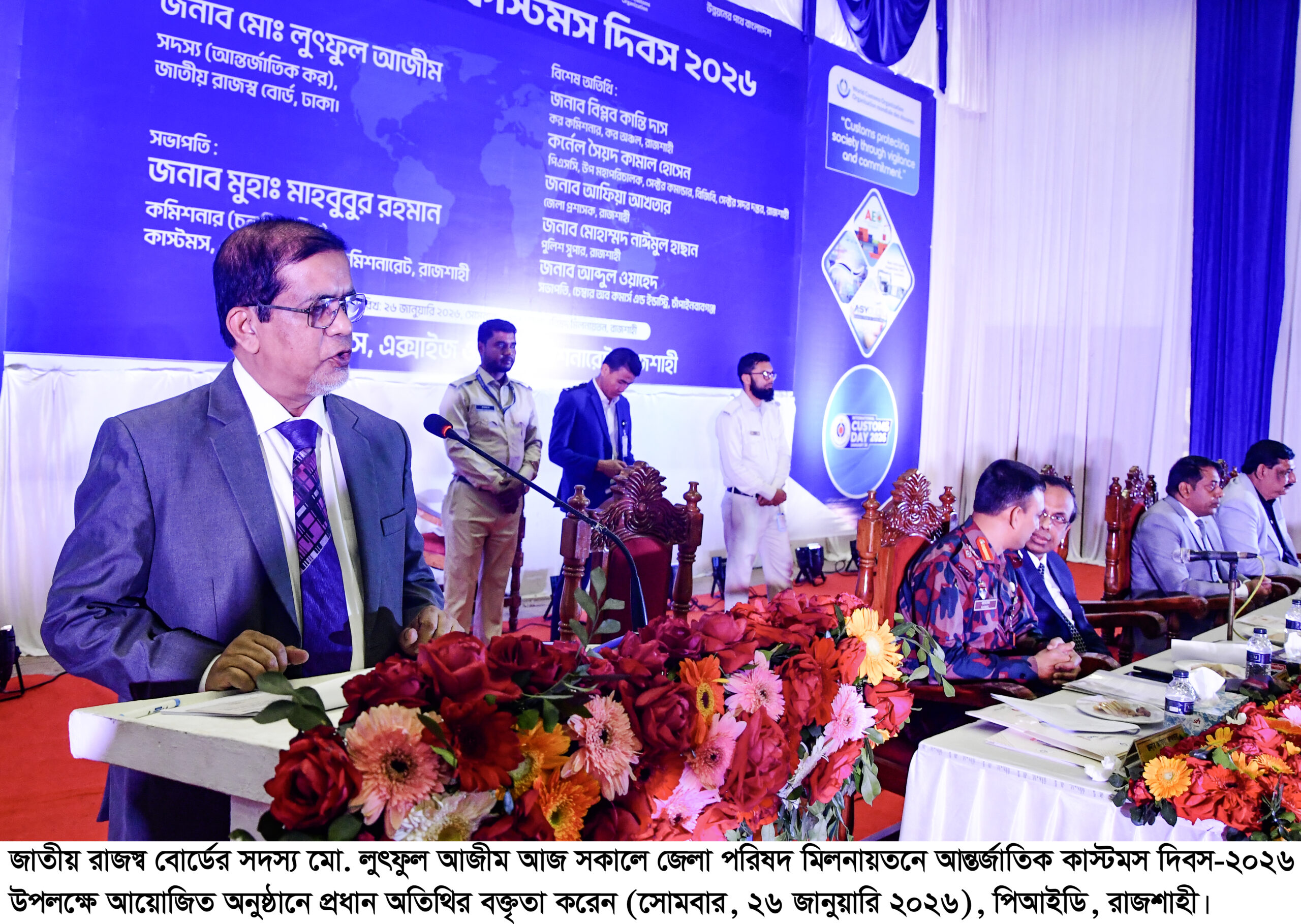 গতকাল সোমবার সকালে রাজশাহী জেলা পরিষদ মিলনায়তনে আন্তর্জাতিক কাস্টমস দিবস-২০২৬ উপলক্ষে রাজশাহী কাস্টমস, এক্সাইজ ও ভ্যাট কমিশনারেট আয়োজিত সেমিনারে প্রধান অতিথির বক্তৃতায় তিনি এসব কথা বলেন। লুৎফুল আজীম বলেন, আমরা যত স্বচ্ছ হতে পারব ততো আমাদের দেশে দুর্নীতি কমে যাবে এবং আপনারা ভালো সেবা পাবেন।