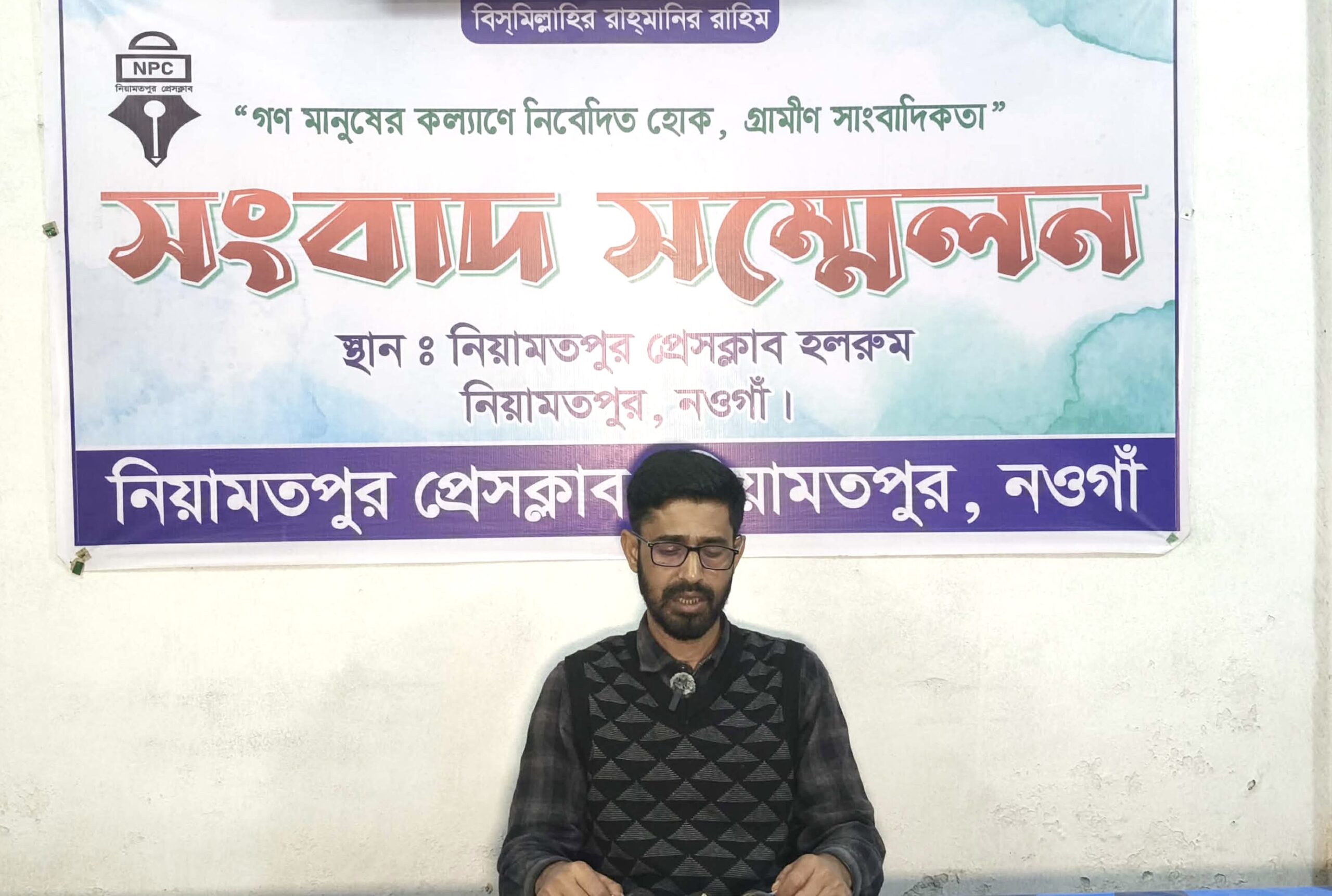 নিয়ামতপুরে ঘর ভাঙচুর ও লুটপাটের অভিযোগে সংবাদ সম্মেলন