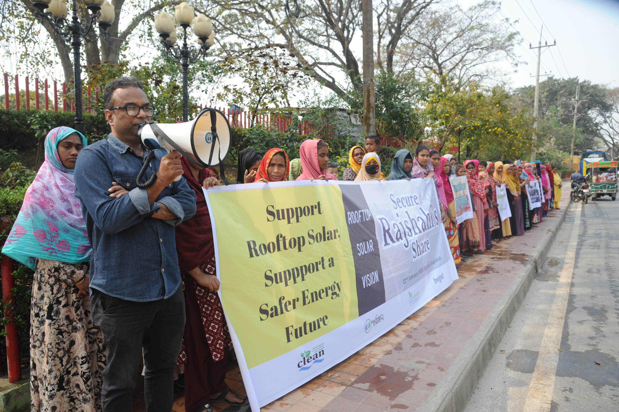 এসময় বক্তব্য দেন নারী নেত্রী ফরিদা বেগম, আবেদা বেগম, পরিবর্তন পরিচালক রাশেদ রিপন, ক্যম্পেইন এসোসিয়েট রনি রায়, সোমা ভৌমিক প্রমুখ। রাজশাহী মহানগরীর পঞ্চবটি এলাকায়  আয়োজিত এক মানবন্ধনকালে বক্তারা বলেন, স্থানীয় সরকার প্রতিষ্ঠানসমূহের সক্রিয় সমর্থন ও সরাসরি অংশগ্রহণ ছাড়া নবায়নযোগ্য জ্বালানির লক্ষ্যমাত্রা অর্জন সম্ভব নয়। কর্মসূচিটি যৌথভাবে আয়োজন করে পরিবর্তন, প্রতিবেশ ও উন্নয়ন ফোরাম-রাজশাহী, ক্লিন  এবং ইডএঊউ-সহ স্থানীয় কমিউনিটি প্ল্যাটফর্মসমূহ। এতে স্থানীয় সাংবাদিক, যুব প্রতিনিধি, নারী নেত্রী ও পরিবেশ আন্দোলনের কর্মীরা অংশ নেন।