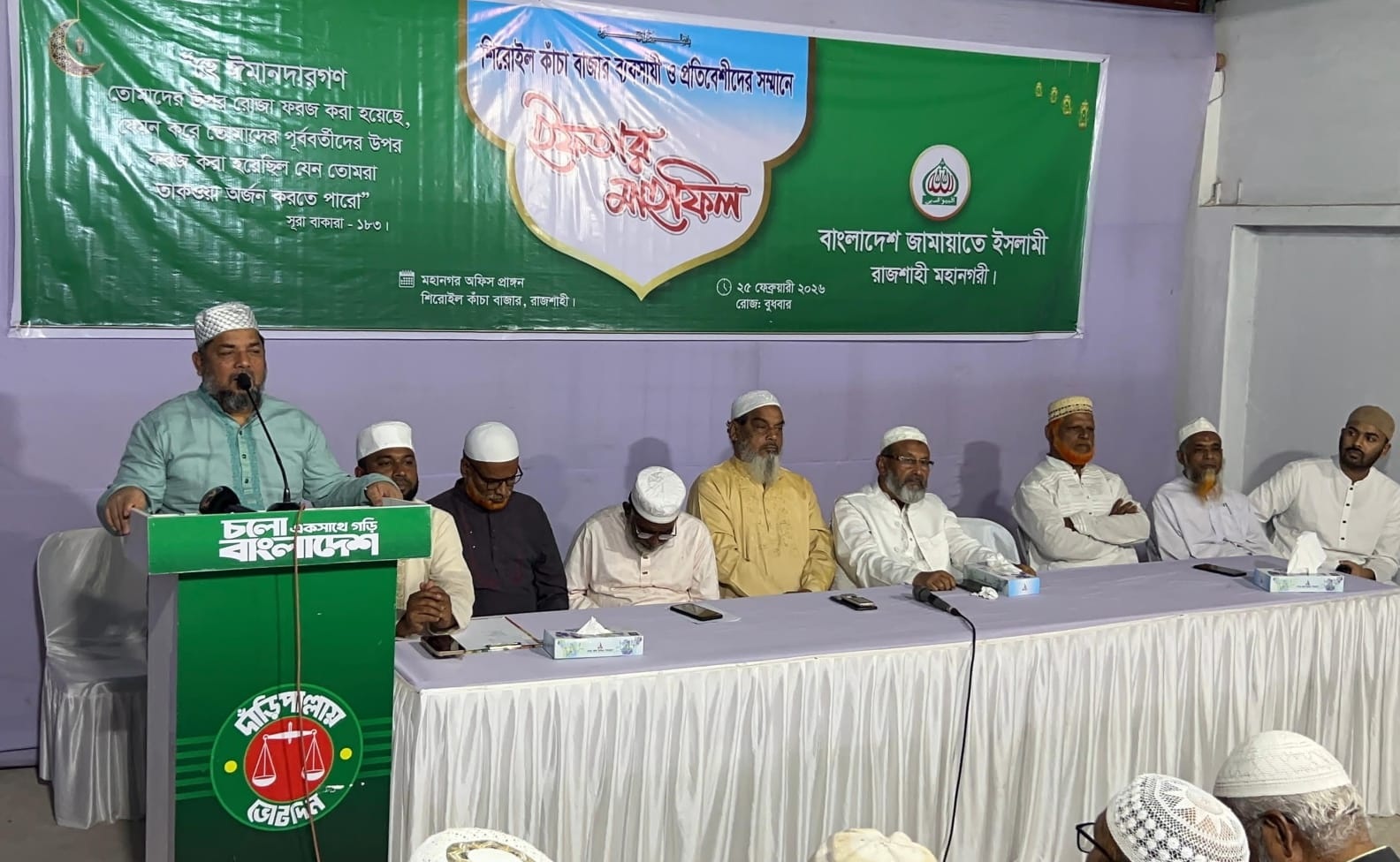 প্রেস বিজ্ঞপ্তি: রাজশাহী মহানগরী জামায়াতের উদ্যোগে নগরীর শিরোইল কাঁচাবাজারের ব্যবসায়ী ও প্রতিবেশীদের নিয়ে আলোচনাসভা ও ইফতার মাহফিল অনুষ্ঠিত হয়েছে। গতকাল বুধবার বিকেলে রাজশাহী মহানগরী জামায়াতের শিরোইলের কার্যালয় প্রাঙ্গনে এই ইফতার মাহফিল অনুষ্ঠিত হয়।