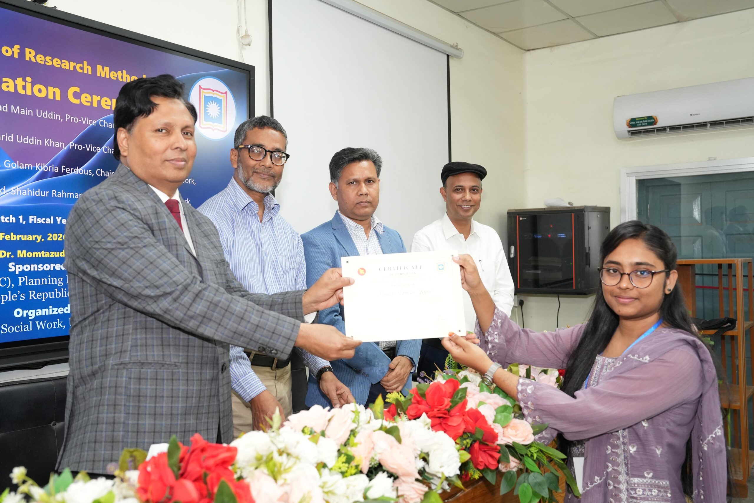 সমাজকর্ম বিভাগের সভাপতি প্রফেসর গোলাম কিবরিয়া ফেরদৌস অনুষ্ঠানে সভাপতিত্ব করেন এবং স্বাগত বক্তৃতা করেন কোর্স কো-অর্ডিনেটর প্রফেসর শাহীদুর রহমান চৌধুরী। পরিকল্পনা মন্ত্রণালয়ের আওতাধীন সামাজিক বিজ্ঞান গবেষণা পরিষদ এই প্রশিক্ষণে সহযোগিতা প্রদান করে।