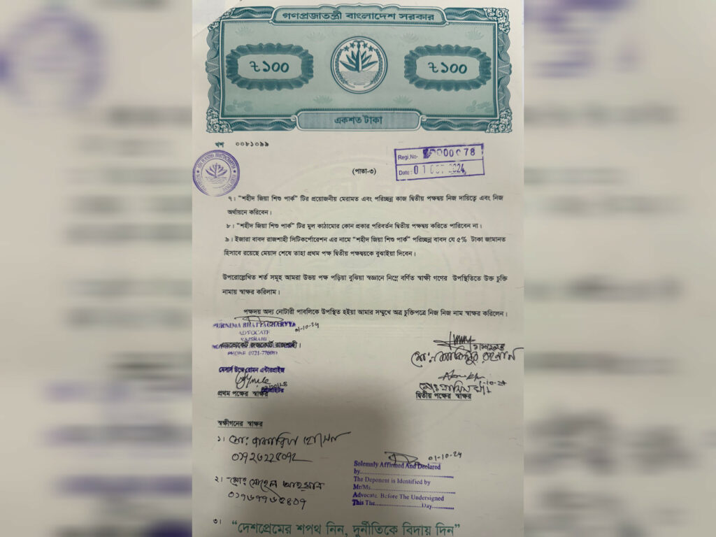 অদ্য ১৬ মার্চ, ২০২৬ দু-একটি গণমাধ্যম ও অনলাইন নিউজ পোর্টালে “রাজশাহীতে বিএনপি-যুবদল-জামায়াত নেতা মিলে নিয়ন্ত্রণ করছেন জিয়া শিশুপার্ক” শিরোনামে প্রকাশিত একটি প্রতিবেদন আমার দৃষ্টিগোচর হয়েছে। প্রতিবেদনে চব্বিশের গণ-অভ্যুত্থানের পর পার্কটির নিয়ন্ত্রণ নেয়ার বিষয়ে আমাকে জড়িয়ে যে অভিযোগ আনা হয়েছে, তা পুরোপুরি ভিত্তিহীন, বিভ্রান্তিকর ও রাজনৈতিক উদ্দেশ্যপ্রণোদিত।