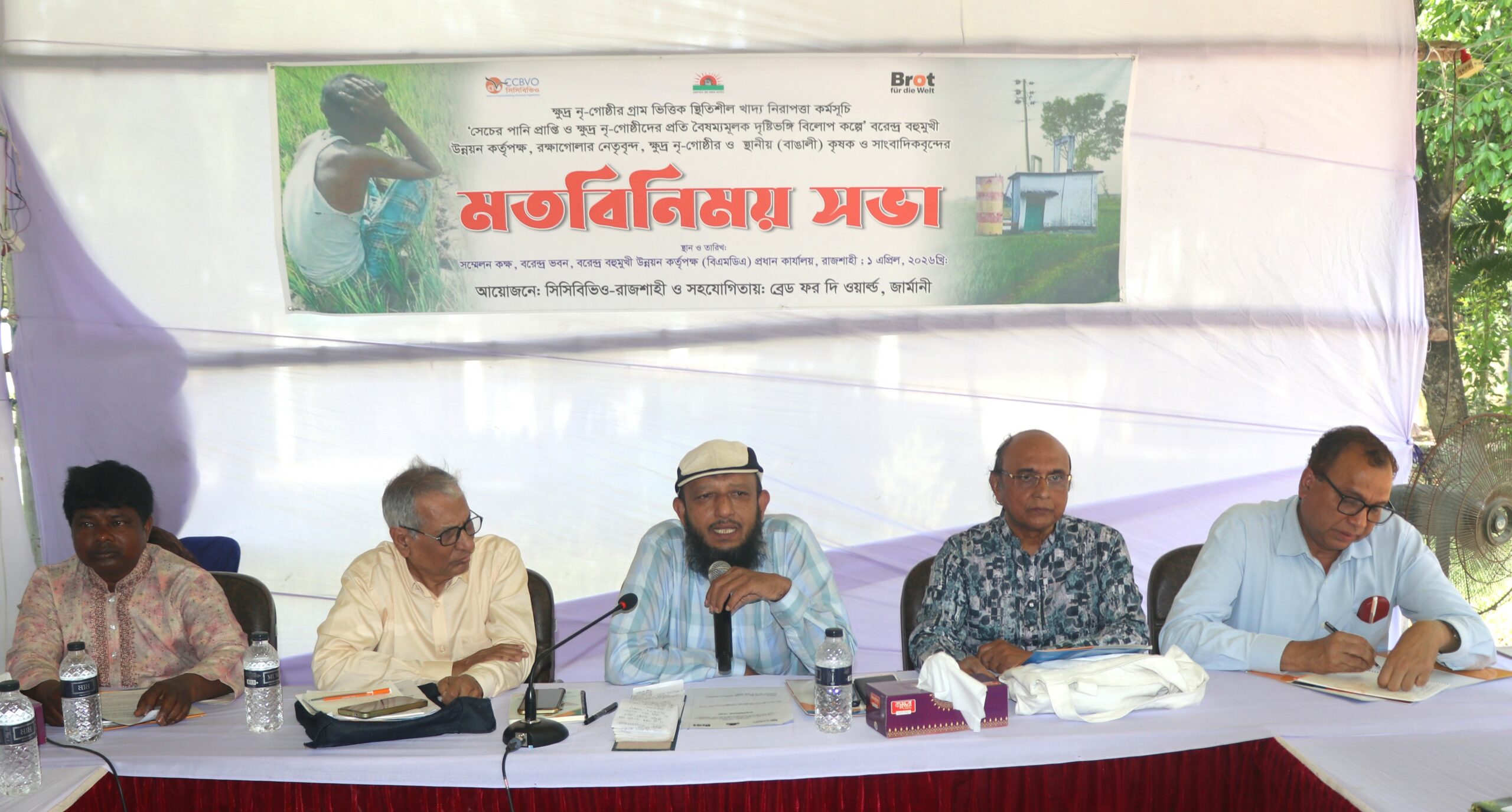 বুধবার সকালে আয়োজিত মতবিনিময় সভায় সিসিবিভিও’র ঊর্ধ্বতন কর্মসূচি কর্মকর্তা নিরাবুল ইসলামের সঞ্চালনায় সভাপতিত্ব করেন রক্ষাগোলা সমন্বয় কমিটির সভাপতি সুধীর সরেন। কি-নোট উপস্থাপন করেন সিসিবিভিও’র কর্মসূচি কর্মকর্তা জোসেফ হাঁসদা। মতবিনিময় সভায় প্রধান অতিথি ছিলেন বরেন্দ্র বহুমুখী উন্নয়ন কর্তৃপক্ষ (বিএমডিএ)-এর নির্বাহী পরিচালক আবু সাঈদ মো. কামরুজ্জামান। বিশেষ অতিথি ছিলেন সিসিবিভিও’র সভাপতি প্রফেসর আবদুস সালাম, নির্বাহী প্রধান বীর মুক্তিযোদ্ধা সারওয়ার-ই-কামাল স্বপন ও বরেন্দ্র বহুমুখী উন্নয়ন কর্তৃপক্ষের অতিরিক্ত প্রধান প্রকৌশলী ড. আবুল কাশেম।