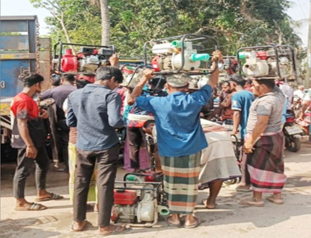 সঙ্কটে সেচ: শ্যালো মেশিন কাঁধে কৃষকের তেলের লড়াই