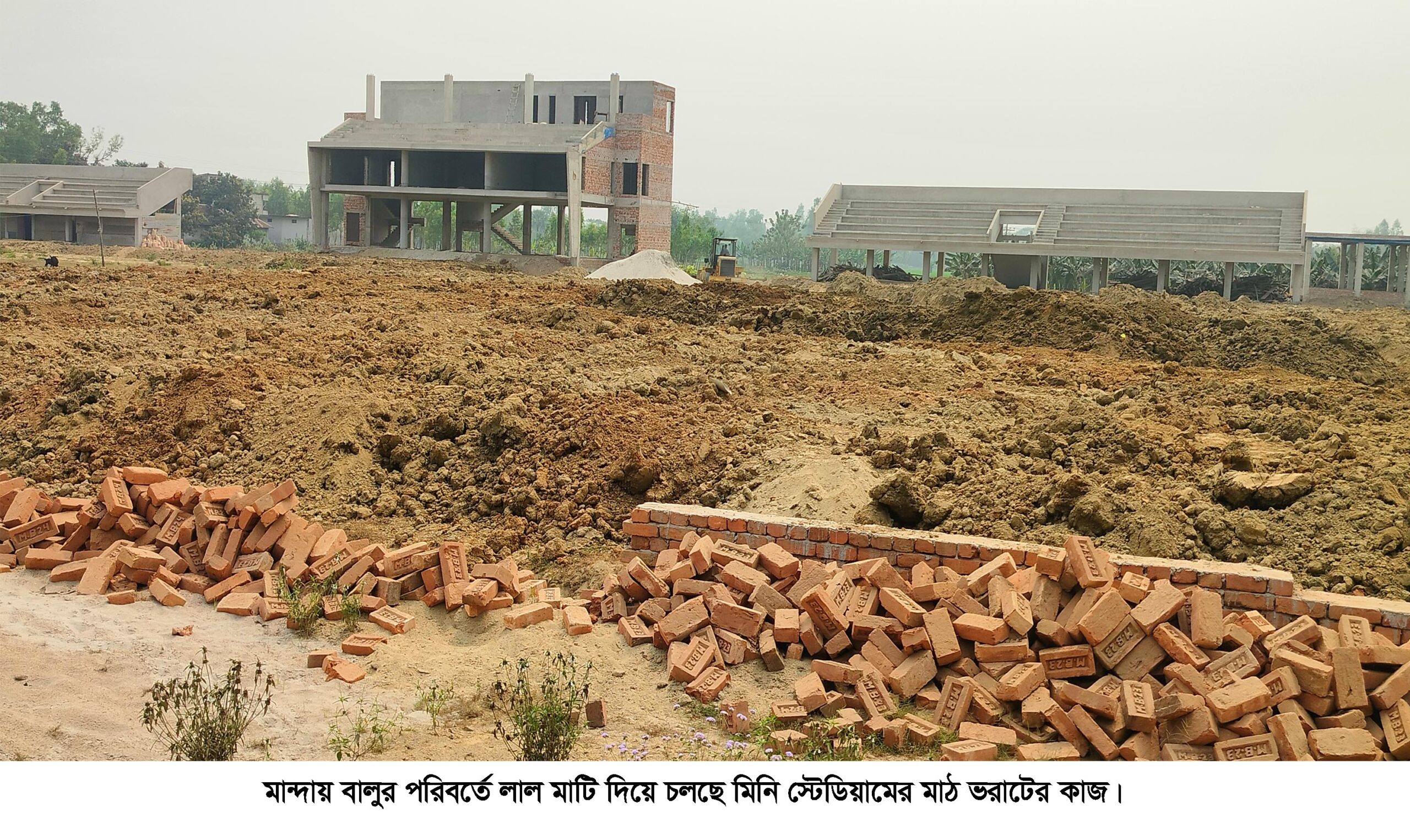 মান্দায় স্টেডিয়াম নির্মাণে বালুর পরিবর্তে মাটি দিয়ে চলছে ভরাট