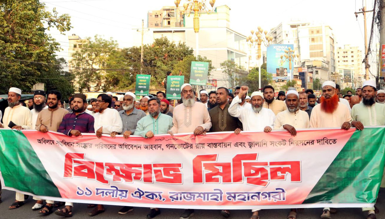 রাজশাহীতে ১১ দলীয় ঐক্যের বিক্ষোভ মিছিল