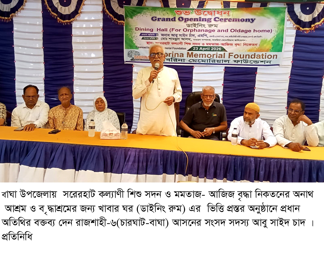 বাঘায় কল্যাণী শিশুসদন ও বৃদ্ধাশ্রমে খাবার ঘরের ভিত্তি স্থাপন করলেন এমপি চাঁদ