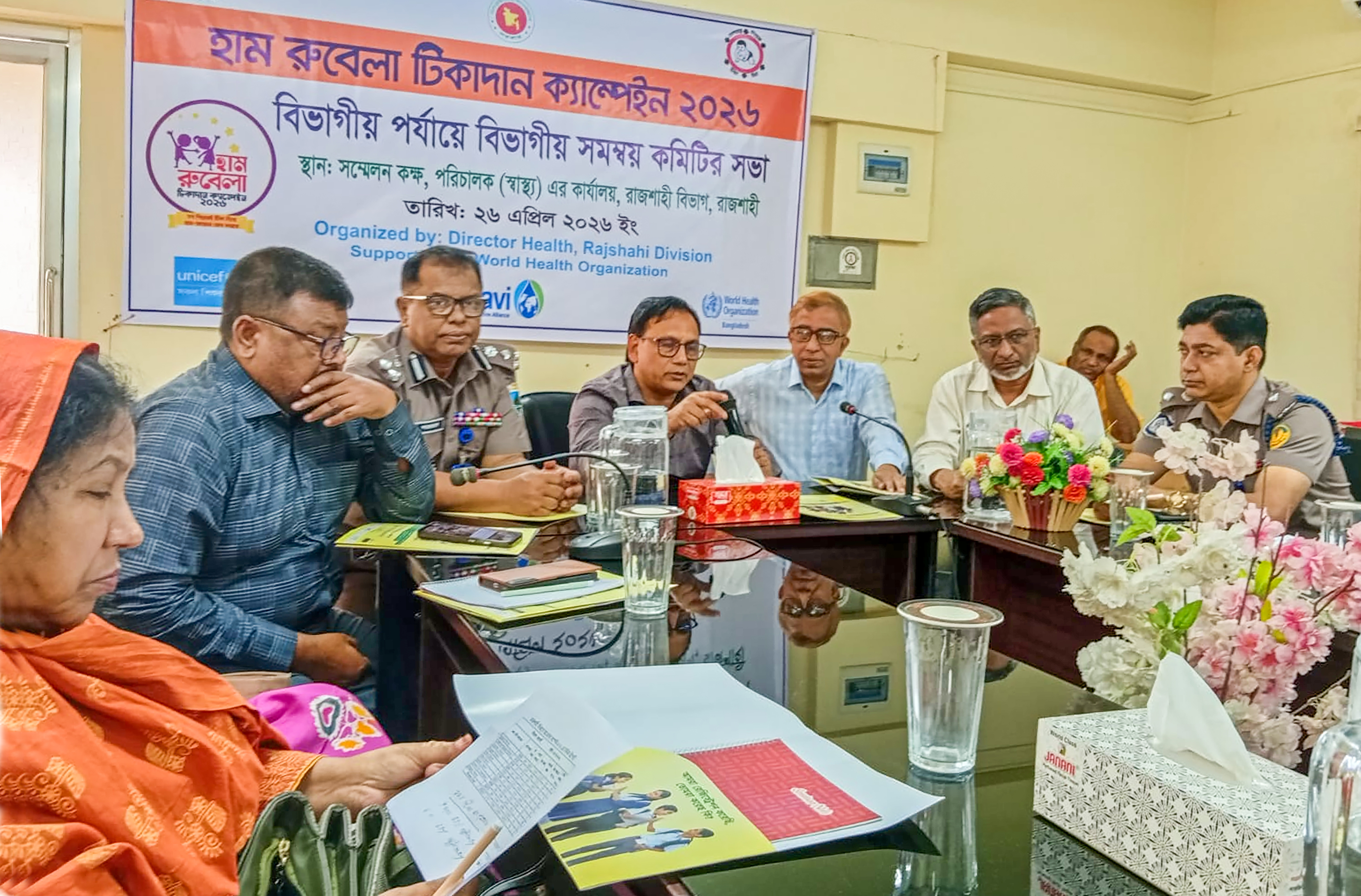 স্টাফ রিপোর্টার: রাজশাহী বিভাগে চলমান হাম রুবেলা টিকাদান ক্যাম্পেইনের অগ্রগতি ও ঘাটতি পর্যালোচনার জন্য বিভাগীয় সমন্বয় কমিটির সভা গতকাল রোববার সকালে স্বাস্থ্যের বিভাগীয় পরিচালকের সম্মেলন কক্ষে অনুষ্ঠিত হয়েছে।