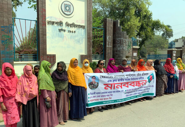 স্টাফ রিপোর্টার: দ্রুত জাতীয় সংসদ নির্বাচনের দাবিতে রাজশাহীতে সর্বস্তরের সাধারণ জনগণের উদ্যোগে মানববন্ধনের আয়োজন করা হয়। সোমবার সকালে রাজশাহী বিশ্ববিদ্যালয়ের প্রধান ফটকের সামনে অনুষ্ঠিত মানববন্ধন…