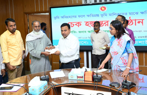 ভূমি অধিগ্রহণে ভূমি মালিকদের চেক হস্তান্তর