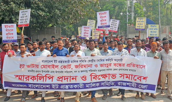 রাজশাহীতে ইটভাটায় অভিযান বন্ধের দাবিতে সমাবেশ ও স্মারকলিপি প্রদান