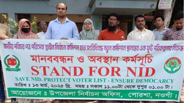 পোরশায় নির্বাচন কর্মকর্তা কর্মচারীদের মানববন্ধন
