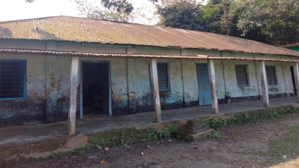 জরাজীর্ণ স্কুল ভবনে ঝুঁকি নিয়ে চলছে পাঠদান