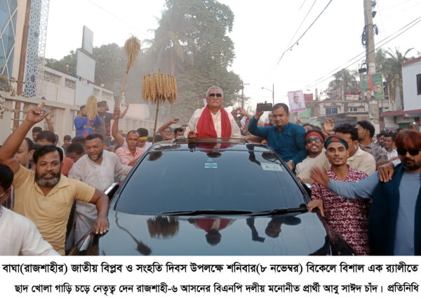 বাঘা প্রতিনিধি: রাজশাহীর বাঘায় জাতীয় বিপ্লব ও সংহতি দিবস উপলক্ষে আলোচনা সভায় প্রধান অতিথির বক্তব্যকালে রাজশাহী-৬ (চারঘাট-বাঘা) আসনে বিএনপি দলীয় মনোনীত প্রার্থী আবু সাঈদ চাঁদ…