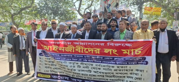 চাঁপাইনবাবগঞ্জে ভারত সীমান্ত অভিমুখে আইনজীবীদের লংমার্চ