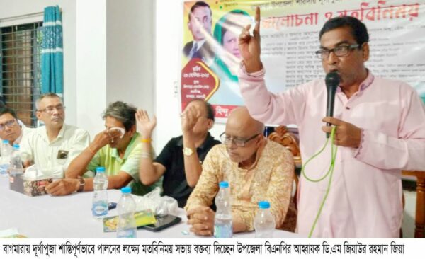 বাগমারায় দুর্গাপূজা শান্তিপূর্ণভাবে পালনের লক্ষে মতবিনিময় সভা