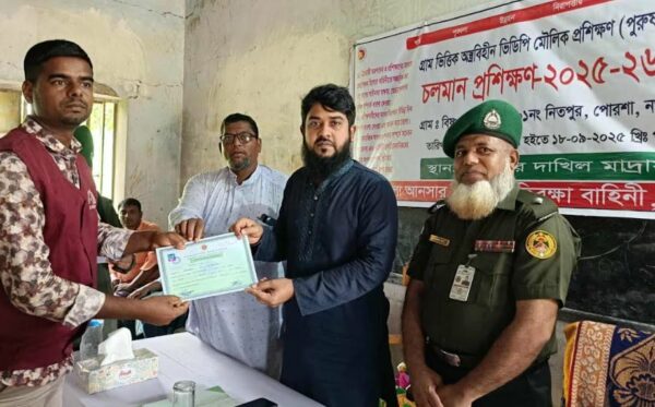 পোরশায় ভিডিপি মৌলিক প্রশিক্ষণের সনদ বিতরণ