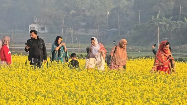 দর্শনার্থী ঠেকাতে সরিষা খেতে পাহারা কৃষকের