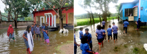 পানিতে ডুবেছে স্কুল প্রাঙ্গণ, শিক্ষার্থীরা ভুগছে চর্মরোগে
