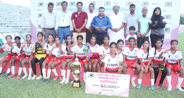 রাজশাহীতে অনুষ্ঠিত অনূর্ধ্ব-১৪ নারী ফুটবলে চ্যাম্পিয়ন রংপুর জেলা