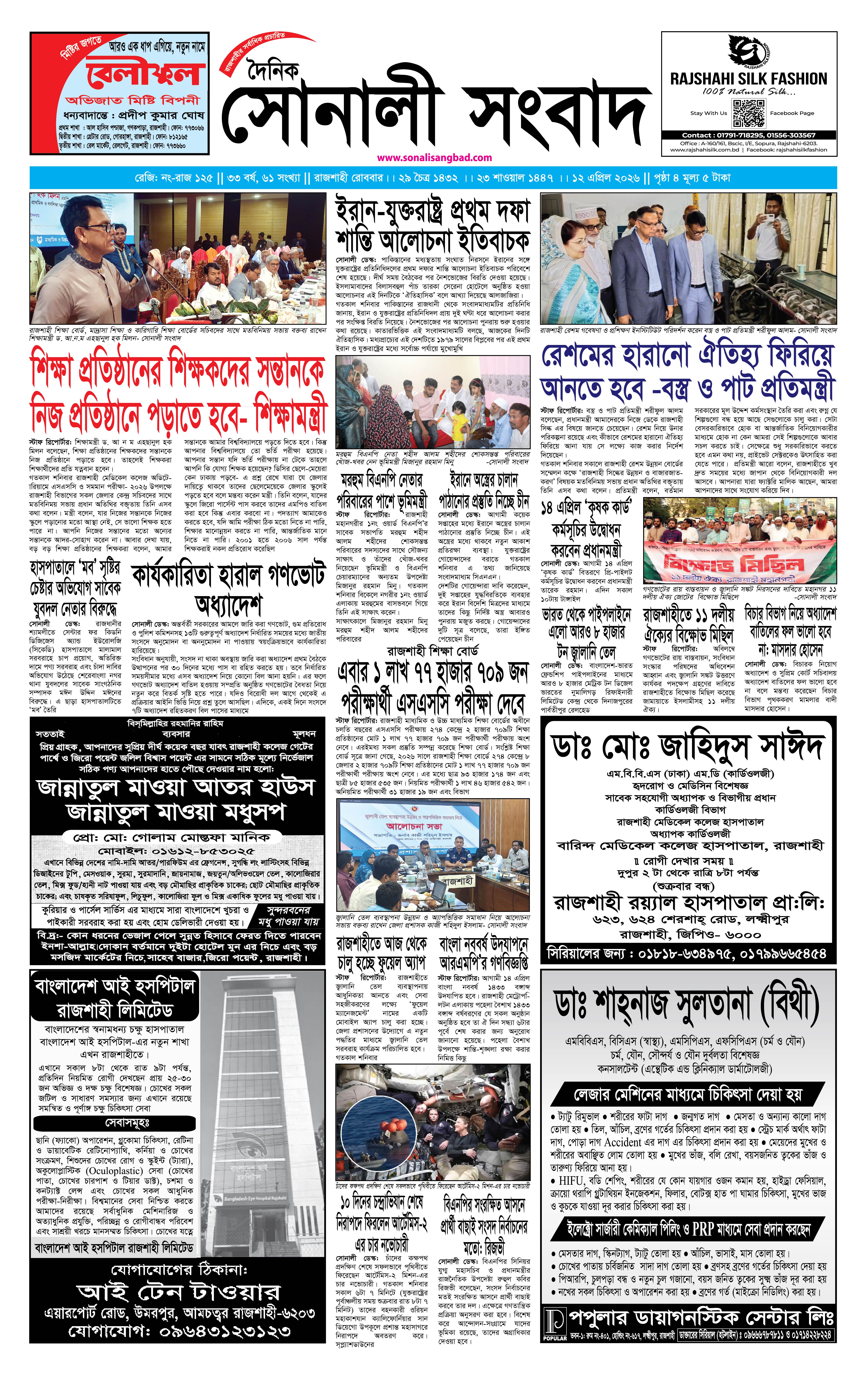 ঢাকা | এপ্রিল ১২, ২০২৬ - ৬:৩৩ পূর্বাহ্ন