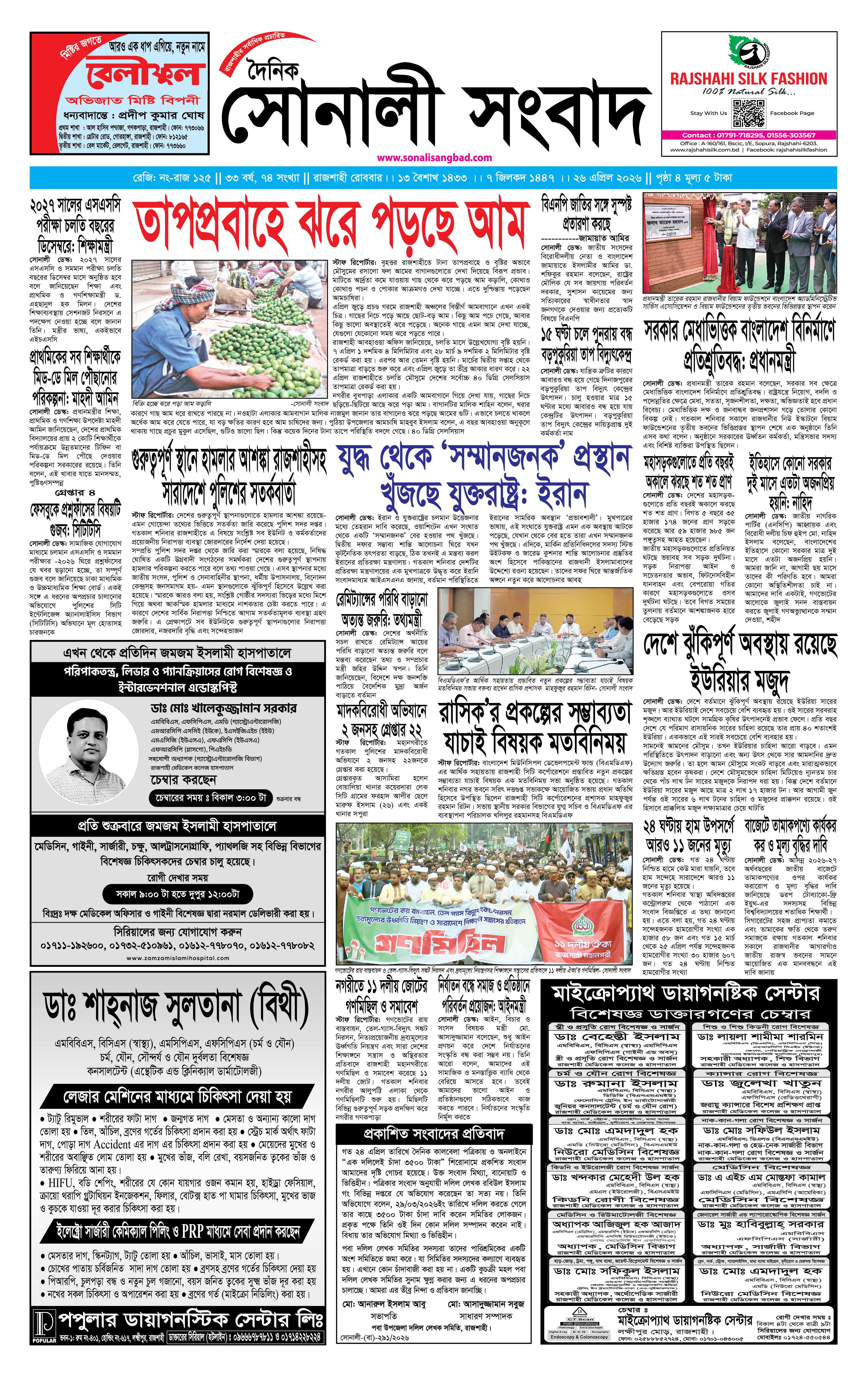 ঢাকা | এপ্রিল ২৬, ২০২৬ - ৫:১১ পূর্বাহ্ন