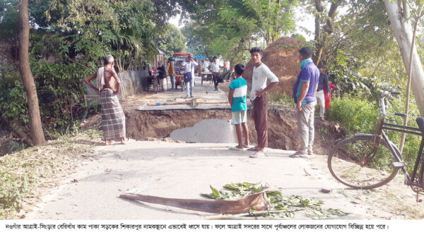 আত্রাইয়ে ইঁদুরের গর্ত থেকে সুরঙ্গের সৃষ্টি, সড়ক ধসে গিয়ে যোগাযোগ বিচ্ছিন্ন